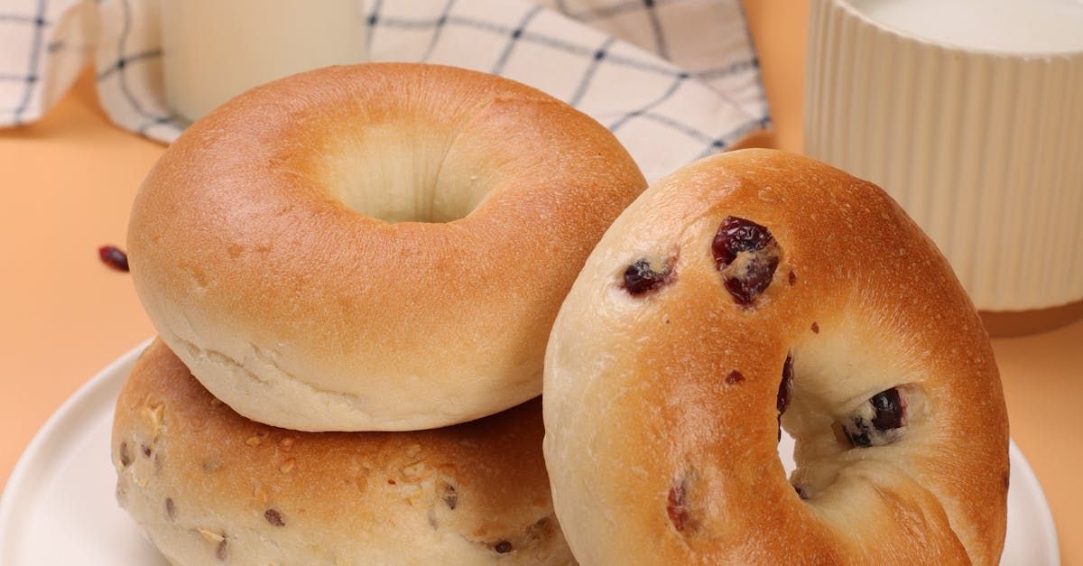 Cheddar Cheese Omelette Topped with Bacon on Plain Bagel